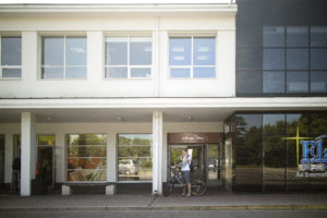 Bussijaamahoone ehitati 1990ndate lõpus oluliselt ümber, varasem ulja joonega varikatus lammutati ning lisati tuima välimusega must klaasist maht. Foto Tanel Eigi.